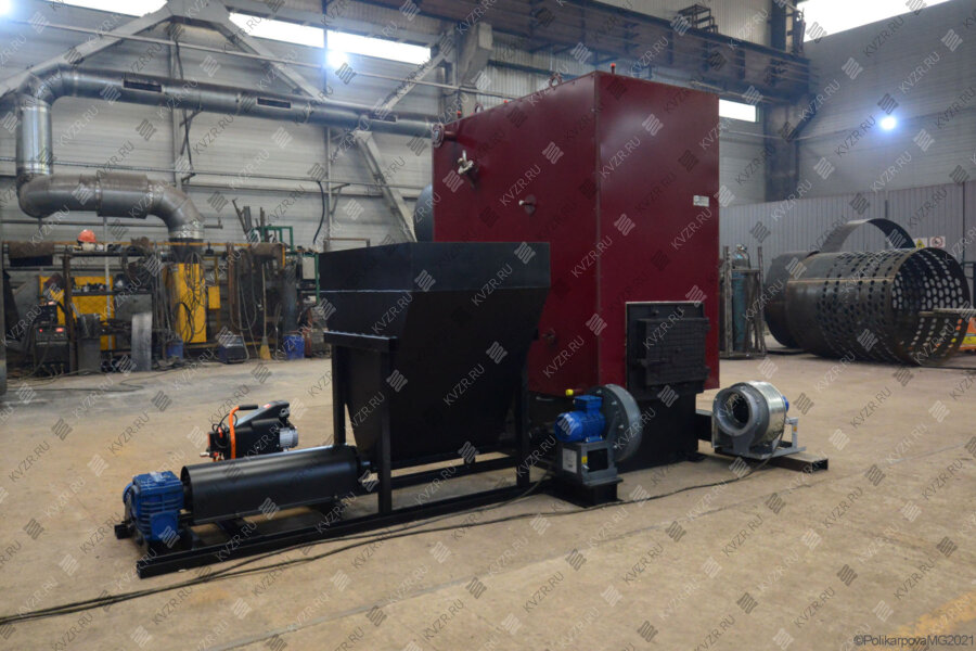 Отечественный котел на опилках мощностью от 0.15 до 1.5 МВт работает в полностью автоматическом режиме. Агрегат оснащен шнековой подачей, бункером с ворошителем, вихревой топкой, современной системой автоматизации и системой пожаротушения. Конструкция вихревой топки сконструирована таким образом, что в ней нет провала и разделения на зону горения и топливо находится в камере сгорания пока полностью не выгорит. Агрегат способен работать с очень влажным топливом до 60% за счет интенсивной сушки сырых опилок. Бункер ворошитель для опилок предотвращает зависание топлива, обеспечивает равномерную и непрерывную работу. Воспламенение топлива в шнековом питателе исключено, предусмотрено воздушное охлаждение выходного узла.