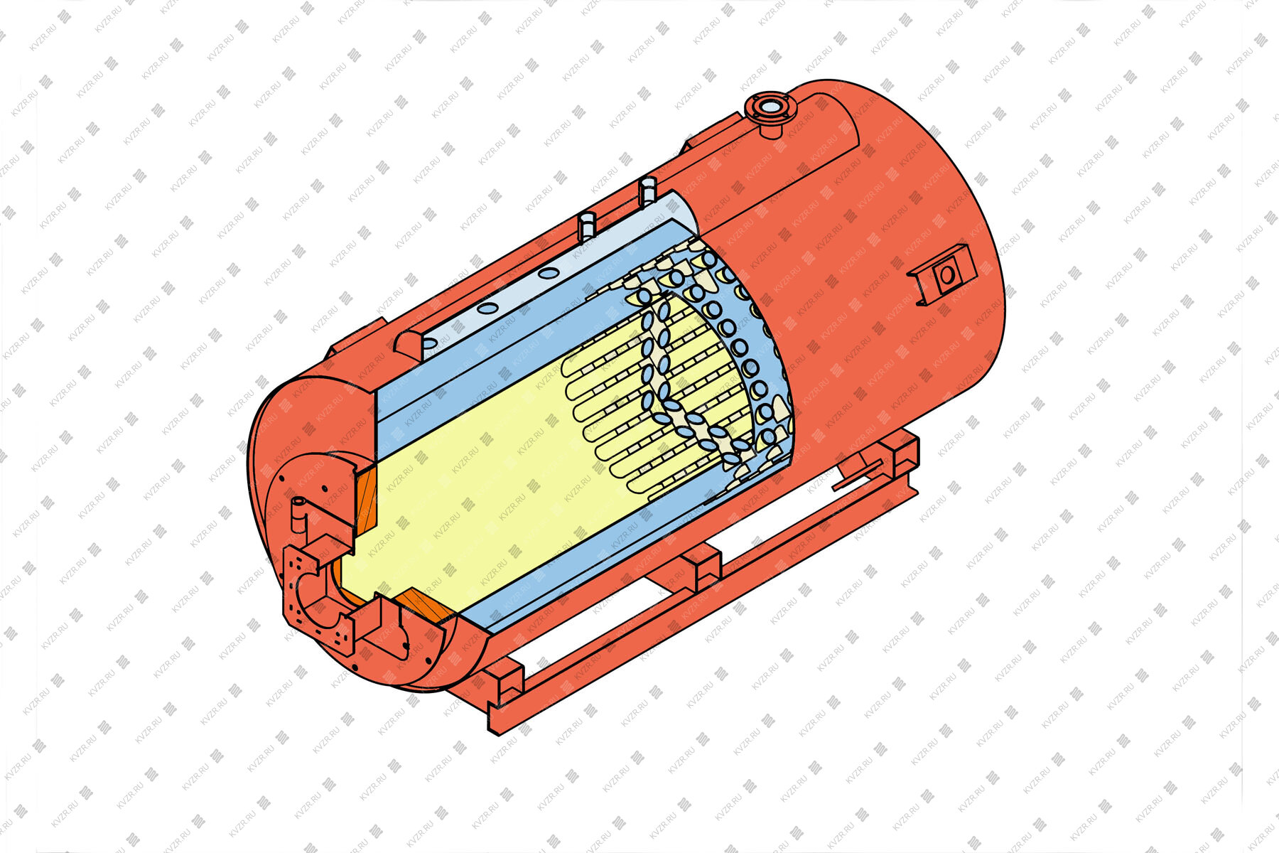 На боковой части корпуса внизу у котла имеется ревизия с крышкой, для периодического осмотра состояния поверхностей нагрева со стороны водяного объема.