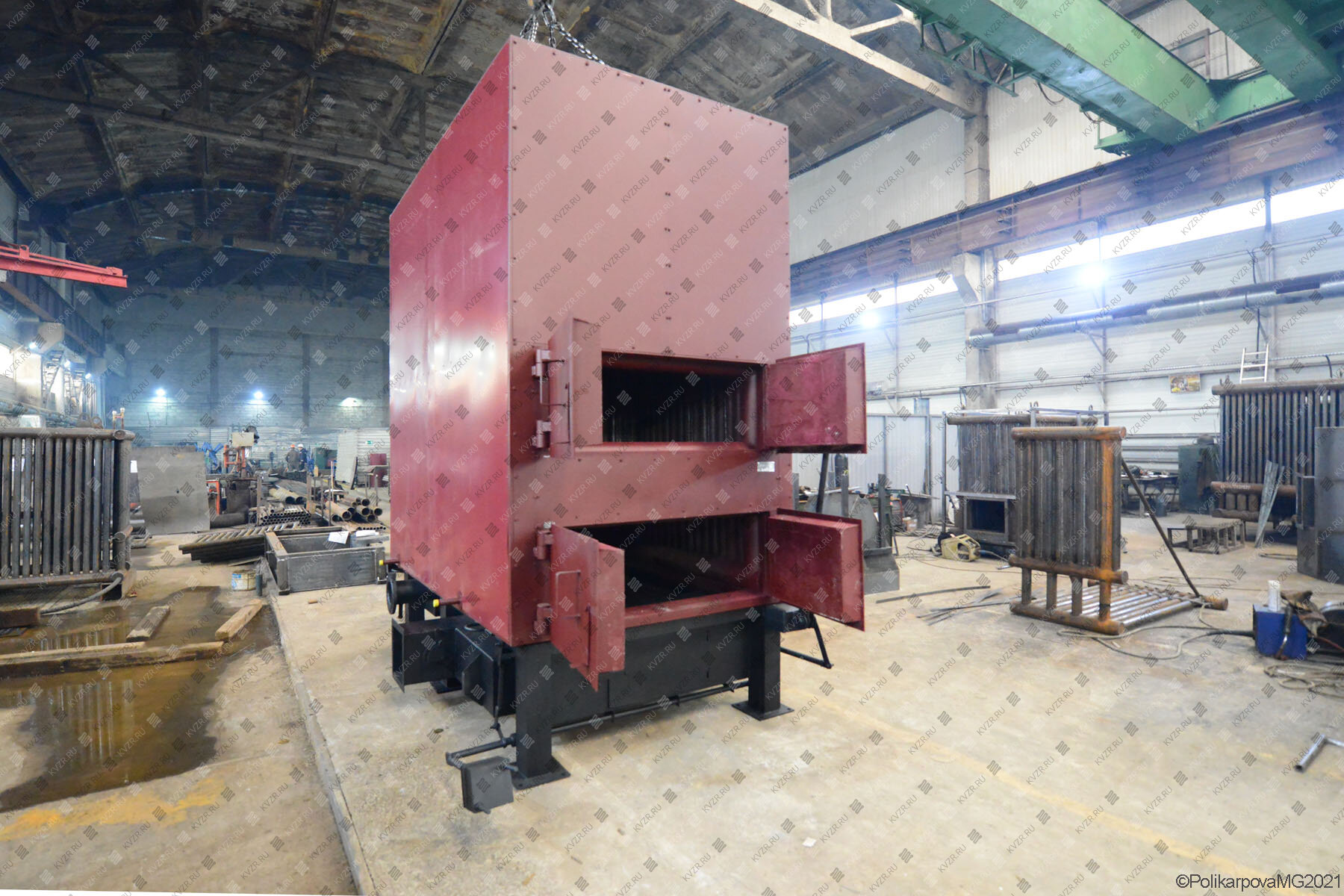 Котельный завод изготавливает промышленные комбинированные котлы на дровах и угле, отапливаемая площадь от 2000 м². Температура воды 70-95 градусов. Высокое КПД, надежность работы, удобство обслуживания.